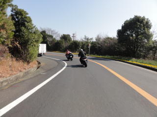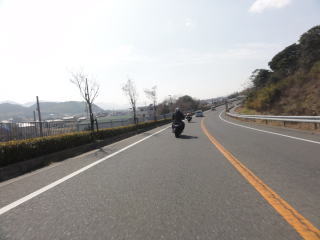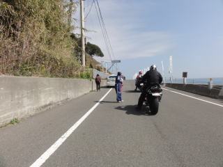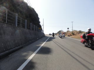 海の見える気持ちのいい道で,アメリカンの集団とすれ違いました。
