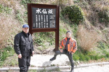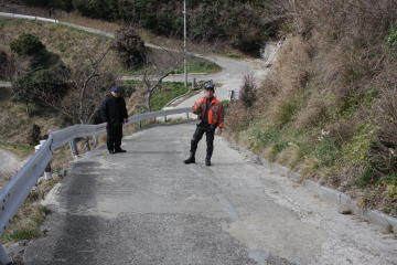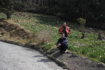水仙が見れるところへは,写真のような狭くて,急ながたがた道を降りなくてはなりません。係の人が