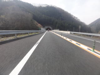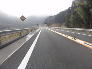 できたばかりの道らしく,路面がきれいで気持ちがいい。ほとんど通行の車もない。京丹波わちICが終点