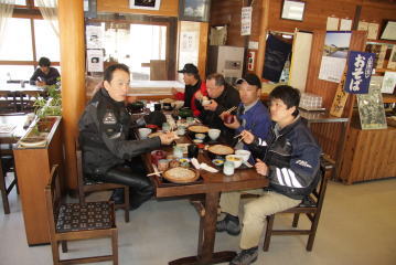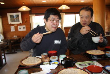 駐車場の所にあったそば屋で昼食。ここは冷たいそばが自家製だそうで,みんなでそれを食べました。