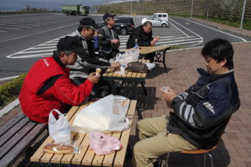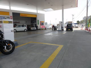 ガソリンスタンドのトイレで用を済ませ,ガソリンスタンドの脇でしばし休憩。