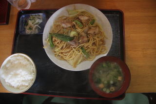 写真はハヤブサが食べた,蒜山焼きそば定食。(¥750)