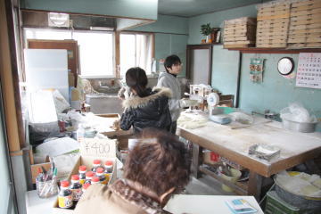 有名なるみばあちゃんは客席のよこでお土産うどんを売ってました。