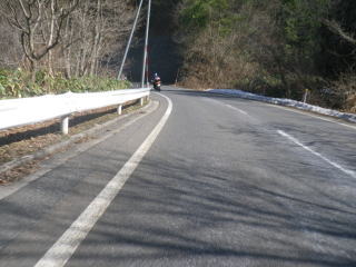 津黒高原を通る。かなり寒い。峠を越えて鳥取県に入ると道路の脇に雪が残っている。