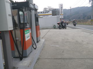 高速に乗る前に給油。ハヤブサとGTR。BMWの2台は無給油で帰れるそうです。