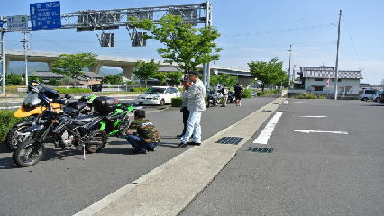 逃げ場はないかと探しながら走ってると、JAのGS跡地を発見。大きな屋根があるので楽に5台入れました。