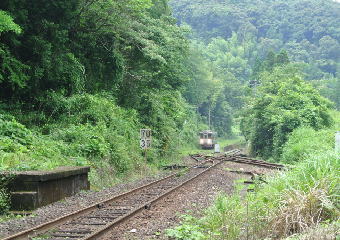 それにしても とんでもないところにある駅だ。 県道から急坂を数km登った突き当たりにその駅はあった。