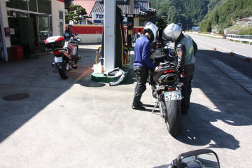日曜日の田舎ということで,なかなか開いているGSがない。
