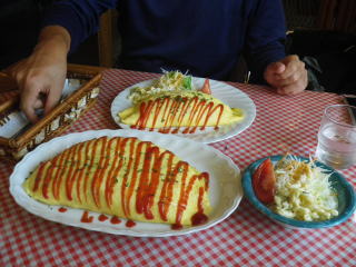 名物のオムライス 上が普通,下はビッグサイズ。