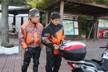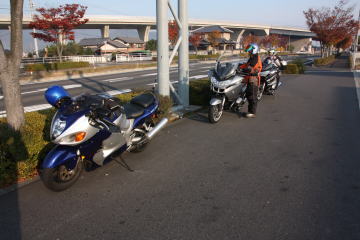 高松からの参加は,浜街道さんとイチローさんの2台のRT,ハヤブサの3台。GSさんが見送りに。