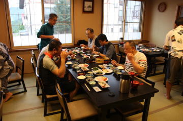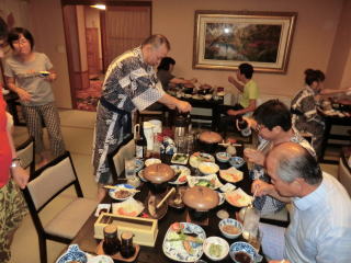 夕食はバイキング形式。しゃぶしゃぶやからあげなどいろんなものがありましたが,昼のラーメンがまだ残っている人もいて,あまり食べられませんでした。ちょっと残念。