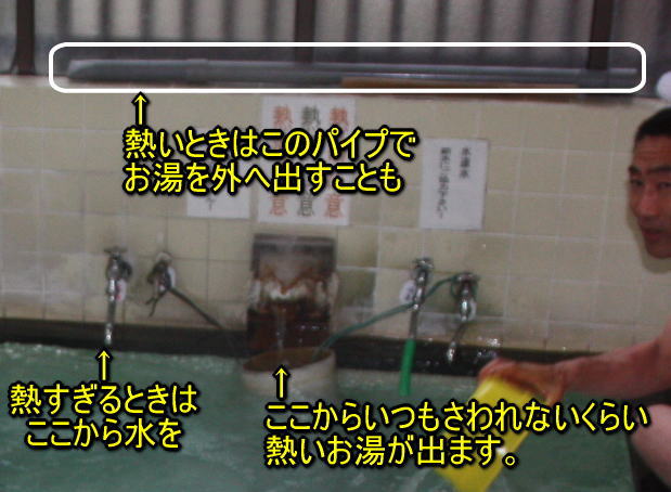 しかし,どこのお湯も熱い。ヤケドしそうです。風呂から上がるとお湯に入っていたところは真っ赤になります。