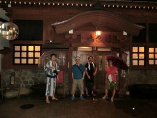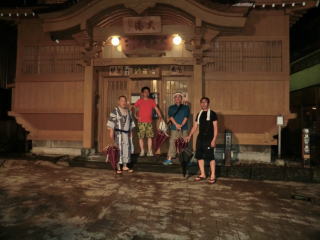 宿の前で記念写真