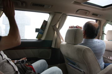 雨が凄いので車内から観光。