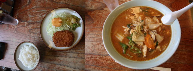 ラーメン(けっこうたくさん麺が入っていました)+ごはん+コロッケ