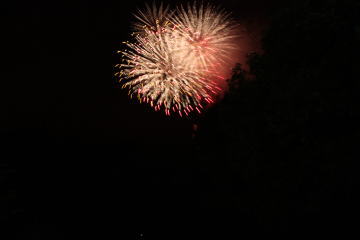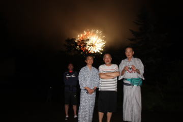 ホテルは白樺湖から少し上がったところにあるので玄関に出ると花火が見えました。