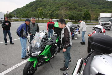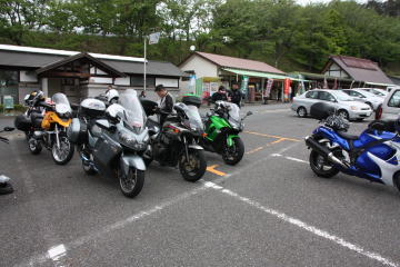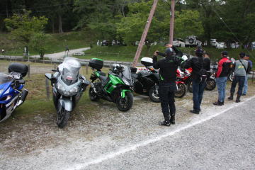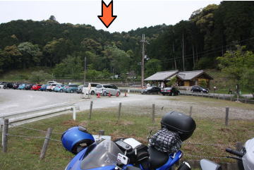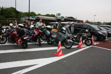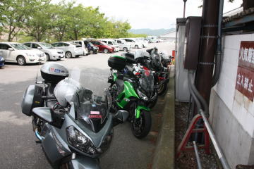 臨時有料駐車場にバイクを駐輪。幹事さんの口利きで無料でした。