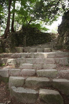 矢印の所にある天守閣跡まで上がりました。なかなか大変です。