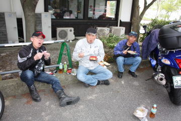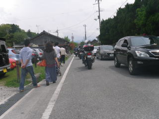 バイクも車も早朝にもかかわらず、すごい台数で、コーンを立てて臨時駐輪場になっていました。