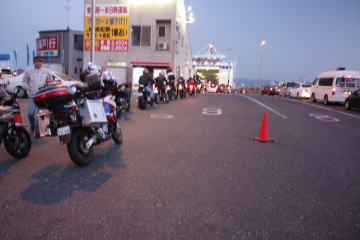 宇野港 瀬戸大橋通行止めの関係で、バイクがいっぱい。