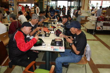 ちょっと休憩。水分補給やじゃがバター・アイスクリームなど。座ることもできありがたい。