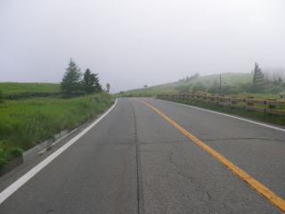 やはり見通しが悪く、景色も見えないし、危ないので、下って蓼科高原方面へいくことに。