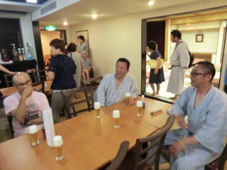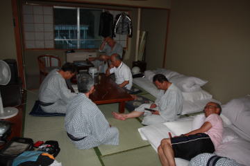 夕食が後便(19:20〜)ということで、一風呂浴びて部屋でミーティング。