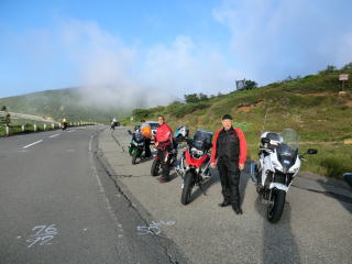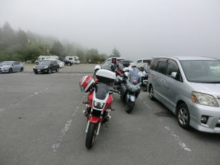 さすがに人が多くて、バイクもいっぱいでした。雲の中という感じで周りの景色は見えませんでした。