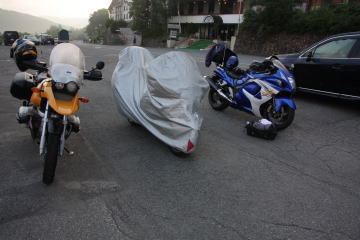 昨晩はみんな早く寝たせいもあって早く起きて、バイクのところへ。