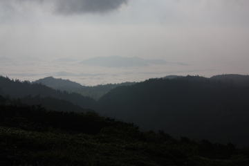 雲の中という感じ(晴れていると北アルプス一望のはず)