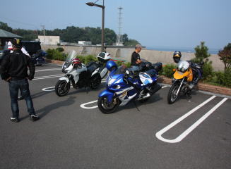 ここではGSさんとSBBさん、見送りのZRX−Sさんとハヤブサ。