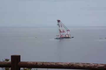 沈没船を引き上げてました。