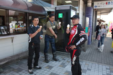 暑いので、ちょっとバイクを降りるとすぐに水分補給。