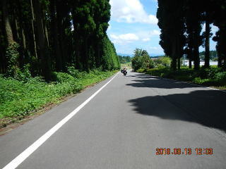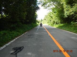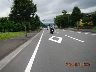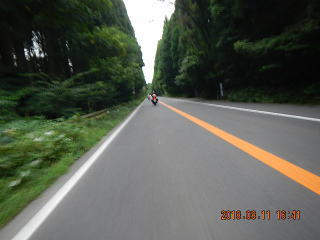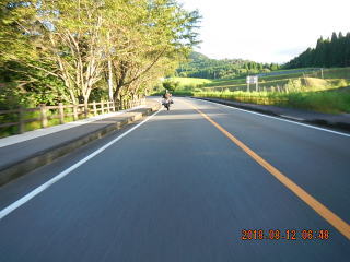 ほとんど車がいないので、気持ちよく走れます。少し路面が濡れていました。