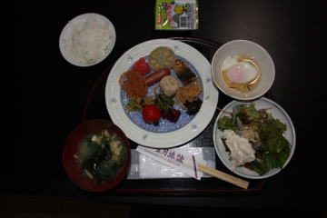 ここも朝食はバイキング形式。(和食中心)それほどたくさん泊まっているわけではないので、ゆっくり座れます。