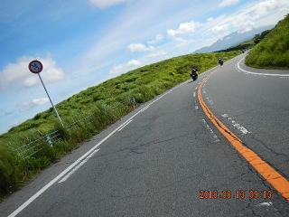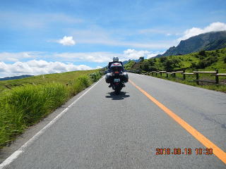 阿蘇山やロープウェーも、バイクを走らせながら。