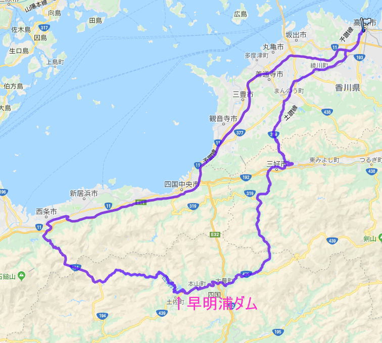 早明浦ダムの北側、K17を快調に走る
