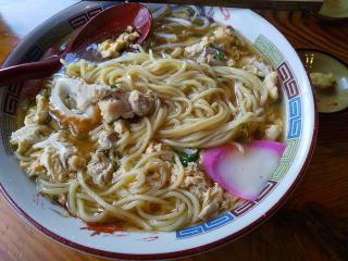 親鳥の入った名物中華そばで昼食。