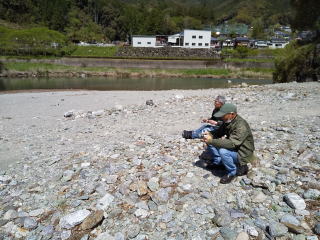 しばらく走って、仁淀川の河川敷で昼食。とてもきれいな水、川底までよく見えました。