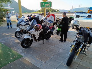 津田SA集合 ここで幹事のRTさん、1100RSさん、浜街道さん、CBFさん、ZX−14さん