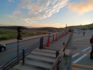 連休なので混んでいるはずだが夕暮れの時間なので、駐車場には入れた。