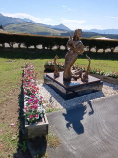 一角には、熊本出身の尾田 栄一郎の寄付をもとに立てたワンピースの像が