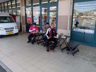 途中のコンビニ横のソフトクリームは閉店してたので、コンビニでアイスクリームじゃんけん。