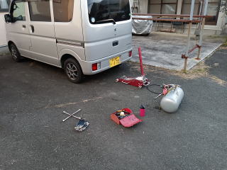 エブリィの空気が抜けているので、JAFの救援依頼。