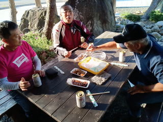 伊予の海鮮焼きで休憩 ノンアルコールビールといややホタテで