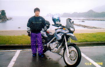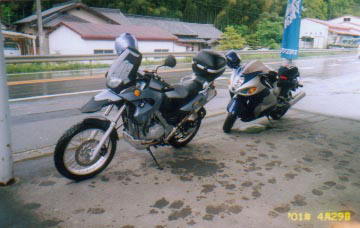 道の駅にて昼食。駐車場から中にはいると屋根付きベンチ付きの所へバイクを置く。(たぶん人が座ってくつろぐ所だと思うけど,この雨だから誰も使わないと思って停車。)