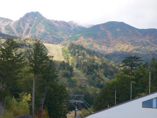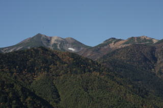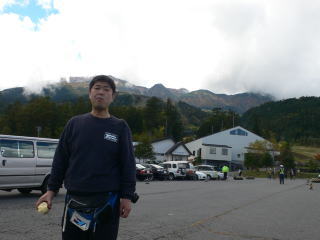 少し雲が切れたので駐車場からからは紅葉がはじまった御岳が見えました。