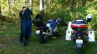 天気も良くなり,気温も上がってきたところでカッパを脱ぐ。着るのに時間がかかるブーツカバーなどはもう少し着ることにする。