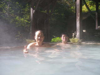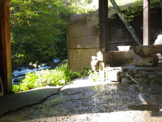 川のせせらぎを聞きながら湯船につかります。硫黄のにおいがして,いかにも温泉といった感じです。