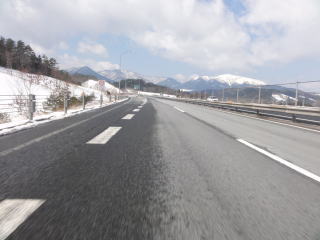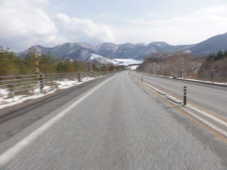 蒜山ではまわりが雪景色。でも,往路ほどは寒くありません。
